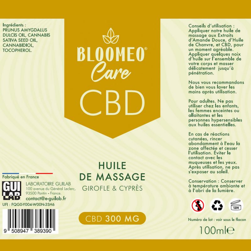Concentration de CBD : 300mg Stock : pack BLMEO-HUILE-MASSAGE-CBD |