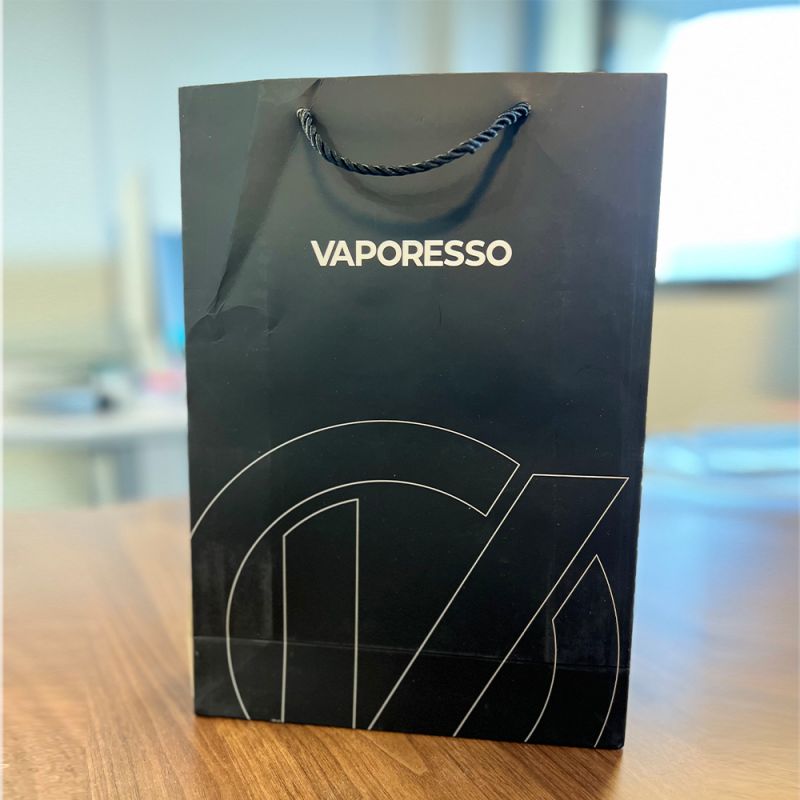 Sac en papier/shopping logoté Vaporesso de petite taille. Pratique pour emporter ses achats.