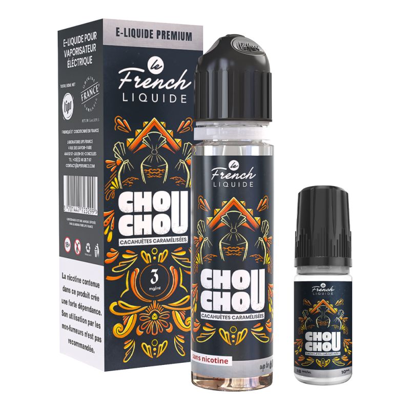 Le e-liquide chouchou 60ml de Le French Liquide propose une saveur gourmande de Cacahuètes caramélisées, un must pour les vapoteurs qui kiffent les saveurs gourmandes !